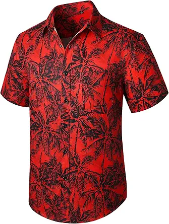 Vibrant red tropical shirt featuring bold palm tree artwork—perfect for summer, vacations, and casual beachwear.